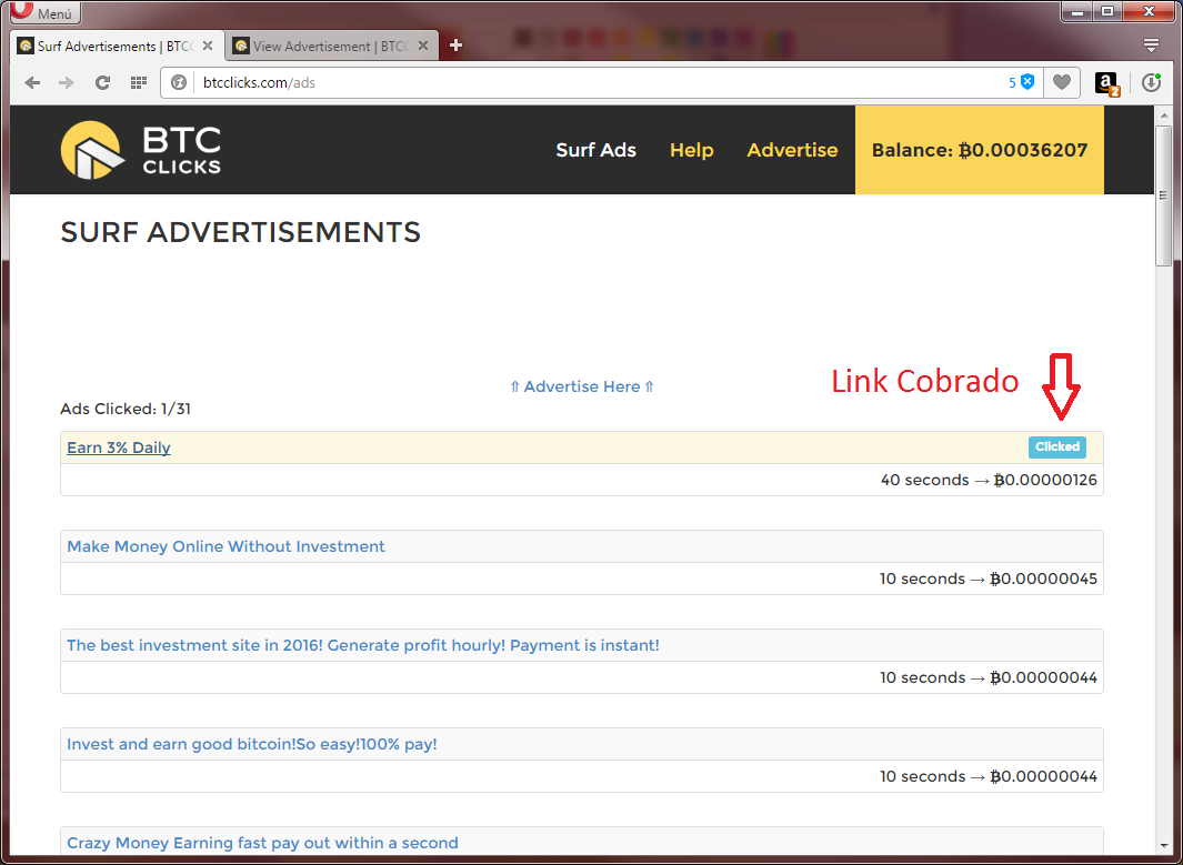 7. Debes terminar todos los link uno a uno y estos se liberaran en 24 horas de nuevo para hacer el mismo proceso todos los días y así ganar Bitcoin a diario.